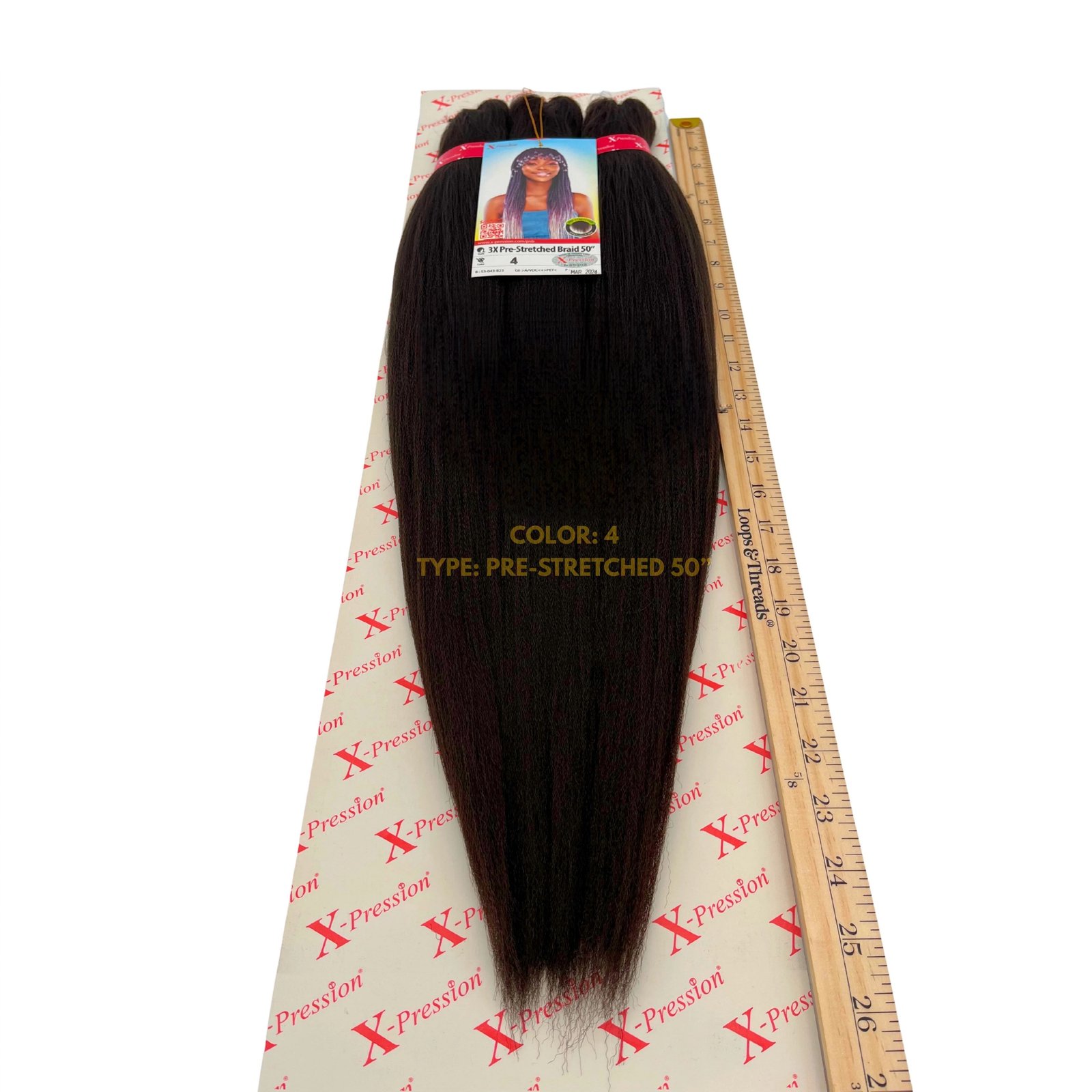 Our X-Pression 3X Pre-Stretched Braiding Hair in Color 4 offers a soft, natural medium brown shade that blends beautifully with many hair types. Made with premium, lightweight fibers, this pack includes 3 bundles of pre-stretched, tangle-free braiding hair designed for faster, cleaner installations. Perfect for knotless braids, box braids, feed-ins, cornrows, and protective styles that look smooth and last long.